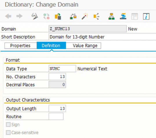 The domain is used to define the value range of a field with formal specifications, such as format and length, by defining fixed values or a value table.