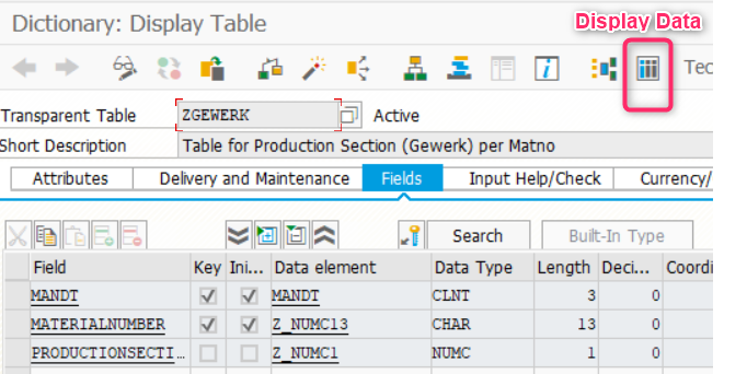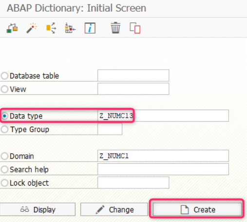 A) Create a domain, e.g. 13-digit numeric field for material number and acitvate with wizard icon.