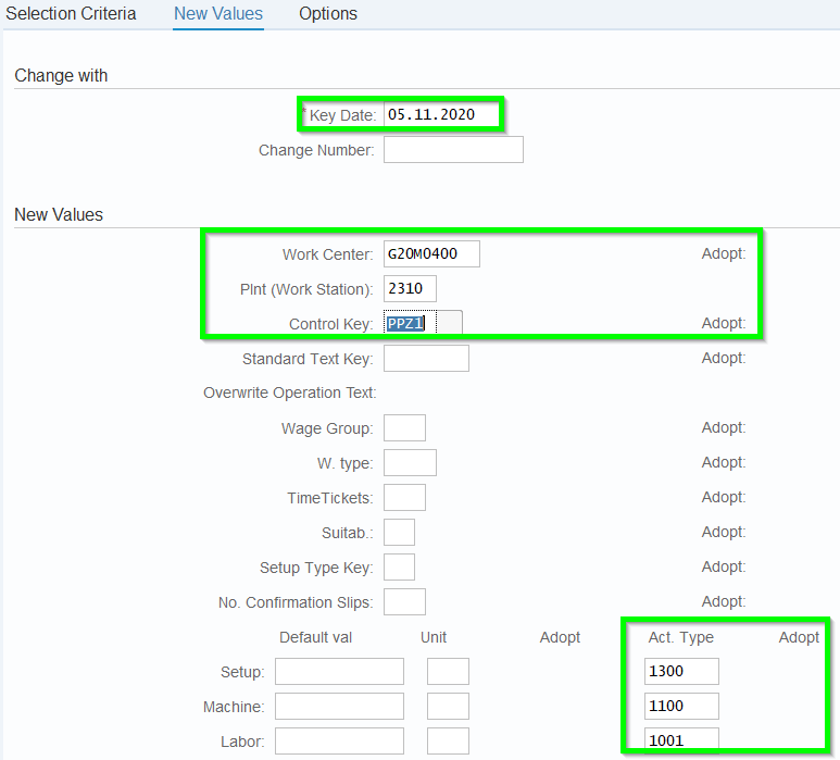 CA85N : Mass Change Work Center (GER Massenänderung Arbeitsplätze)