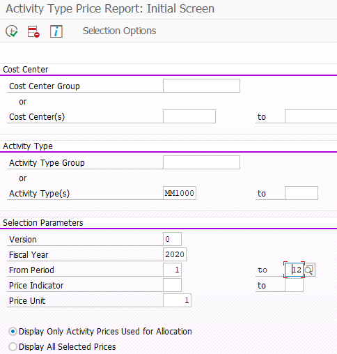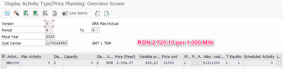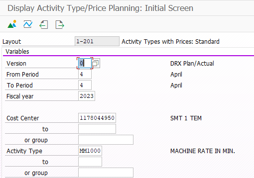 KP27: Display Activity Type/ Price Planning (GER Planung Leistungen/ Tarife) e.g. Maschine costs per min MM1000
