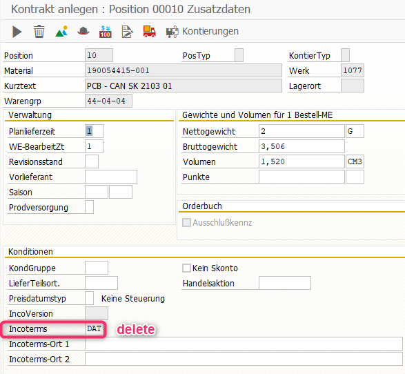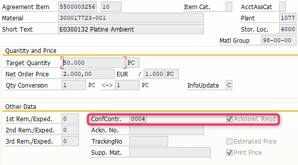 Customer Mat.no. = $ –> Mat.no. ran-out and then should be „Rejected“ (GER „abgesagt“) in the relevant Pos. example 600017095