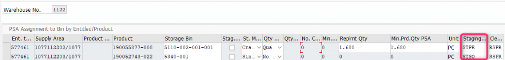 SCWM/PSASTAGE : PSA Assignment to BIN-Strategy (PVB-Zuordnung zu Lagerplatz-Strategie) – STSO = Cross/ Single Order Staging via Lageraufgabe & STPR = Crate Part Replinshment (Kanban)