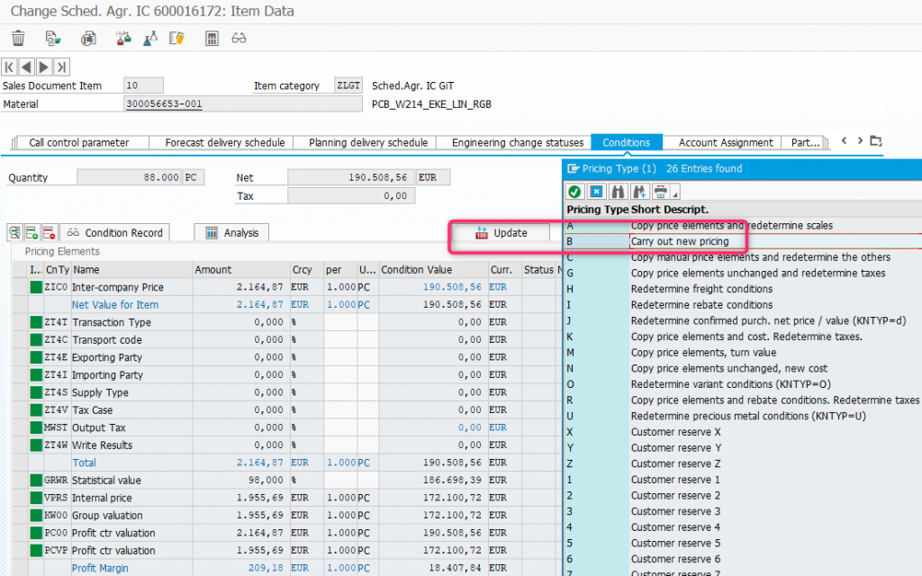 VA33 : SD-Scheduling Agreement (GER SD-Lieferplan) –> in case of price error excecute Conditions Update: