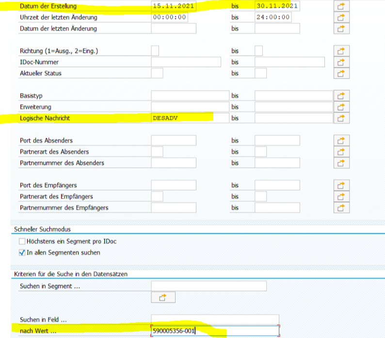 WE09 : Idoc Search (GER IDocs Suche z.B. ASN)