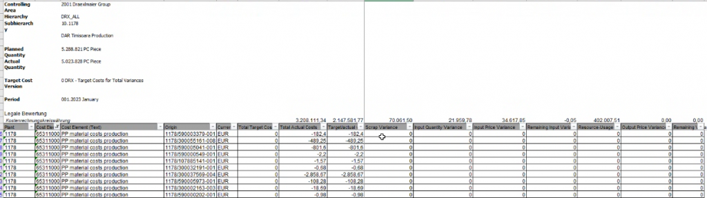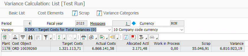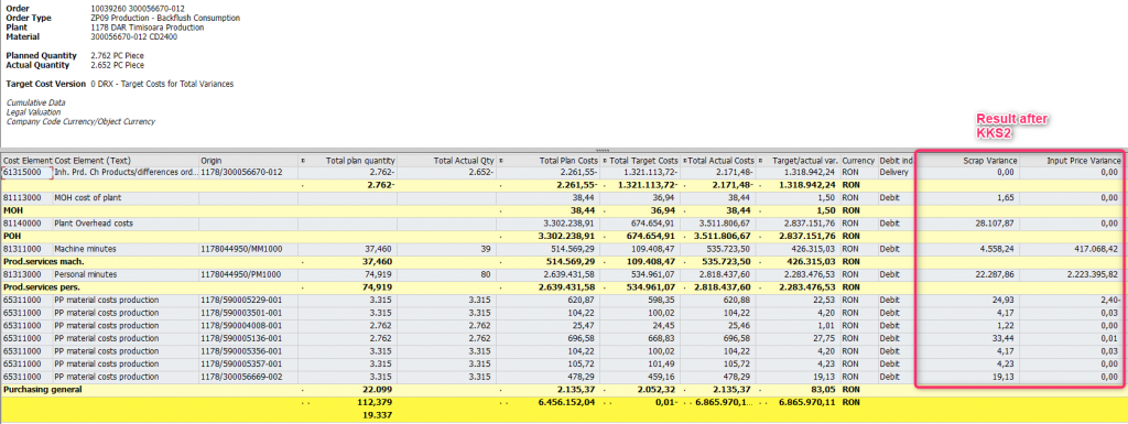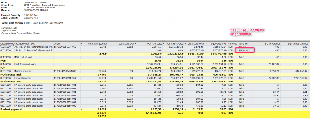 KKBC_HOE_H: Analyze Summarization: Plan/ Actual Comparison (GER Analysieren Verdichtungsobjekt): Summarized reporting of FAUF costs, e.g. scrap