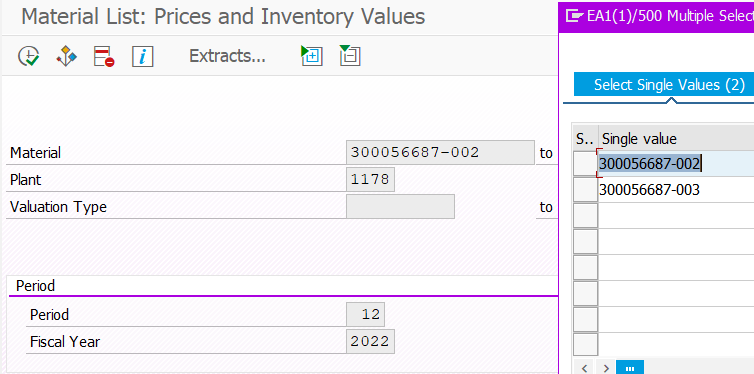 CK13N : Material Cost Calculation (GER Materialkalkulation)