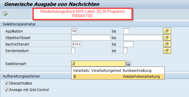 SE38 : ABAP Editor (i.e. RM06C020 Check mistaken Reservations from PO’s and in case delete), e.g. prints / Etiketten Report: RSNAST0D