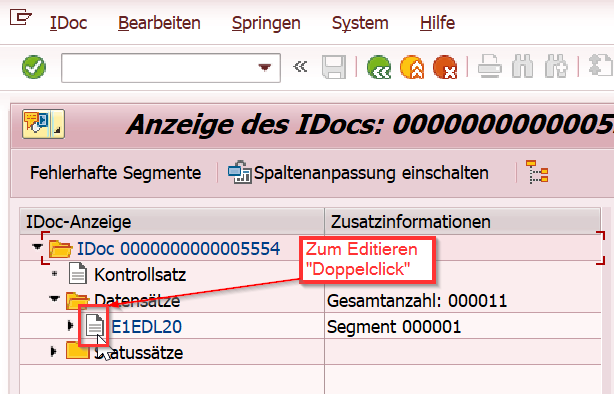 WE02 : IDoc List (GER IDoc-Liste) Idocs bearbeiten