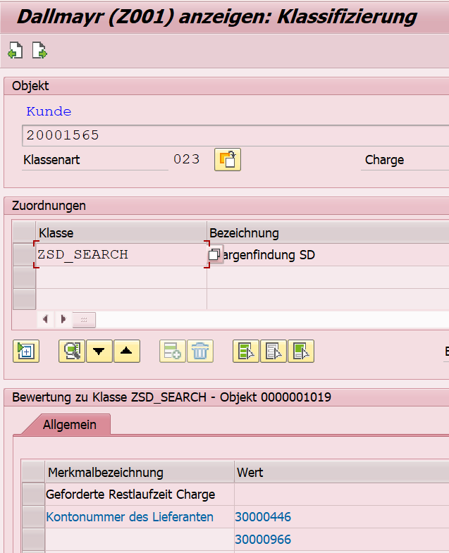 CL02 : Klasse verwalten z.B. neue Klasse kopieren, um weitere Merkmale zu hinterlegen z.B. LOBM_LIFNR