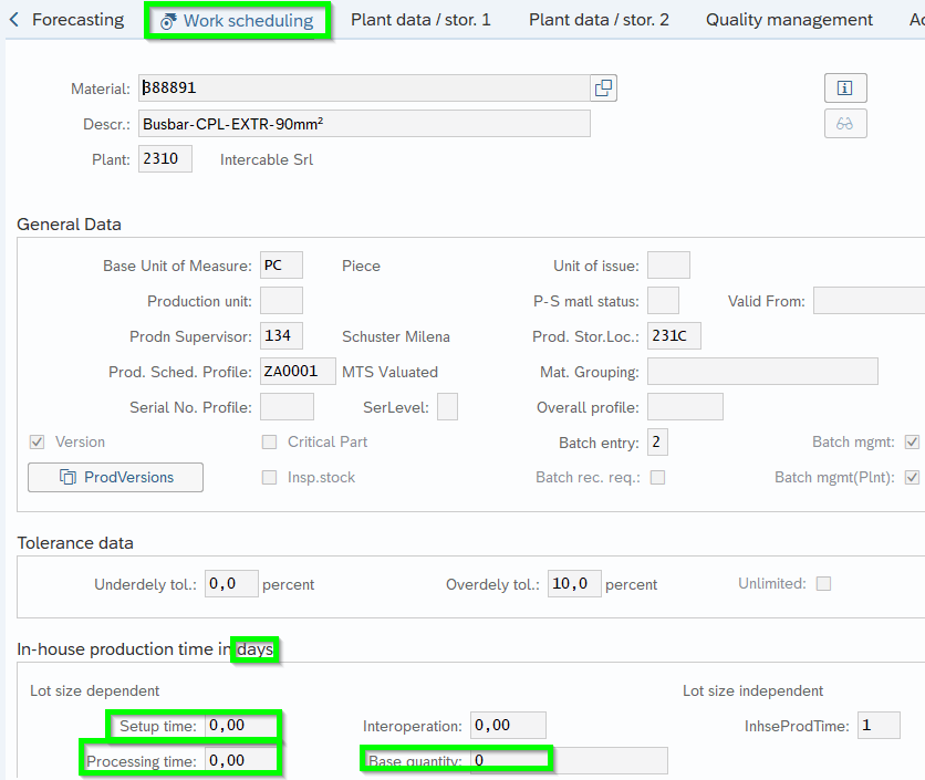 The parameter does not consider any qty. so in this example the time is 1 working day even you produce 1 or 1.000 pcs. If you like to consider qty. maintain following parameters:
