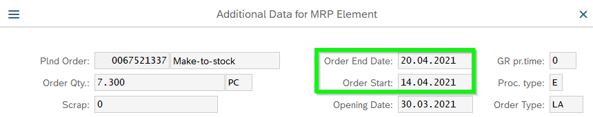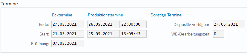 - Order End Date (GER Eckendtermin) = Date on which the components need to be available