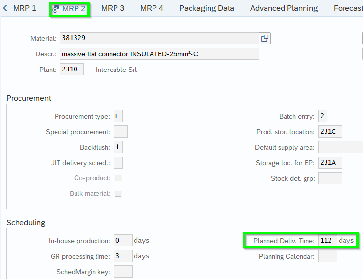 A. Procurement Type (GER Beschaffungsart) MRP2: determines if PLAUF or Purchase Requisition being created. Purchase Requisitions are not linked to supplier yet (only after switched to PO) Hence the Planned Delivery Time (GER Planlieferzeit) out of MRP2 is used:
