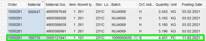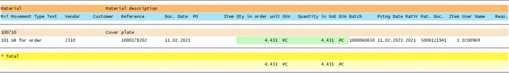 Or from there to documented goods movements: