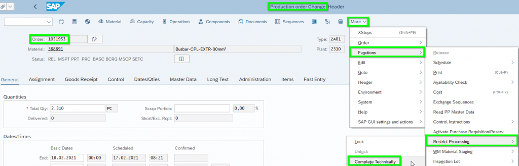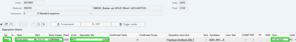 - Production End Date (GER Produktionsendtermin) = Date on which the final Operation needs to be finished