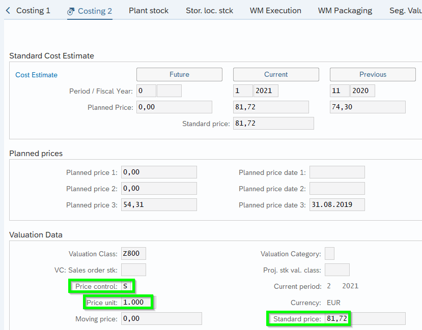 If selected the System calculates it automatically: Gesamtwert des Materialbestandskontos durch die Gesamtmenge der an allen Lagerorten befindlichen Materialien geteilt wird: