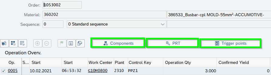 In the same time components, PRT (Tools GER FHM=Fertigungshilfsmittel) or Trigger Points (GER Ereignispunkte) being assigned: