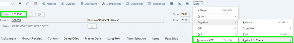 Before you release a FAUF the material availibility should be check. Go to CO02 of the FAUF and push STRG+F4: