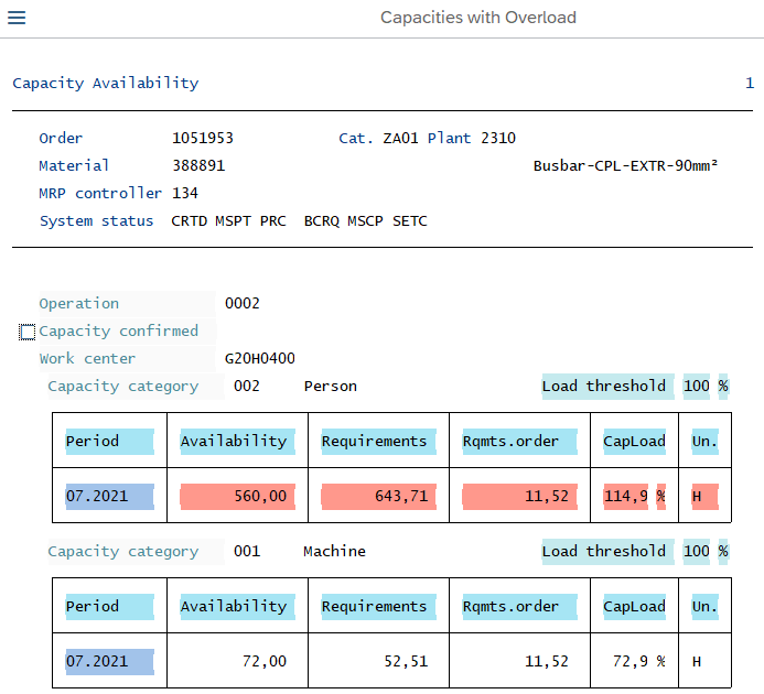 The other check is the Capacity. To use this functionality it needs to be decided where the finite capacity planning being done. In current SAP solution the functionality is not being used in ERP but in MES System so-called ProSes. Hence following screenshots give only a rough overview: