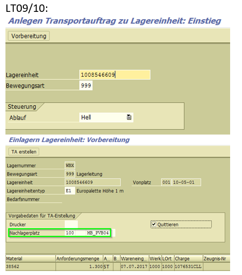 - With Handling Units without EWM: Transport Orders (LT09/10) to Supply Area (GER Produktionsversorgungsbereich PVB)