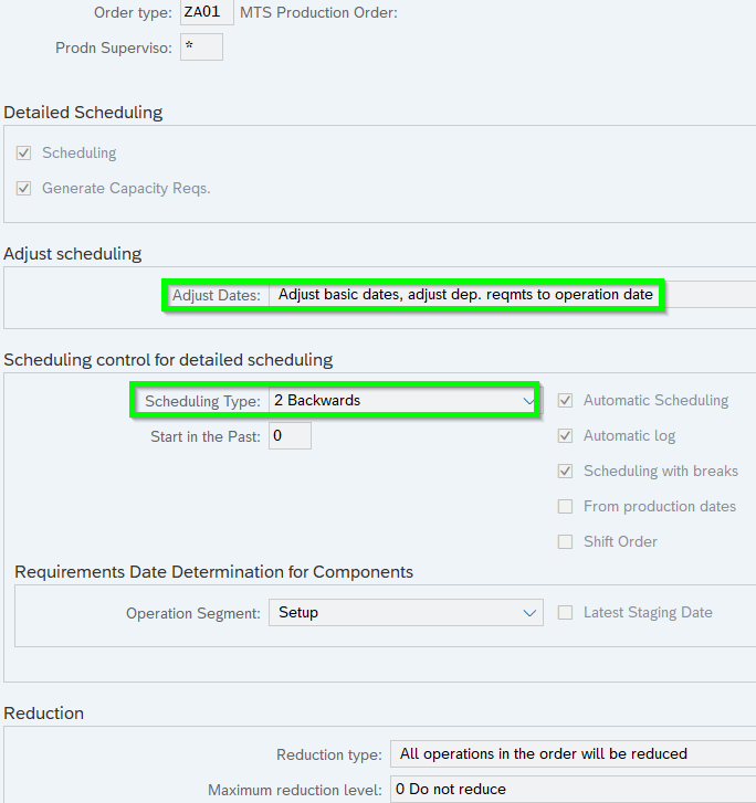 - Backward scheduling: From Order End Date (GER Eckendtermin) the other dates being terminated via backward calculation