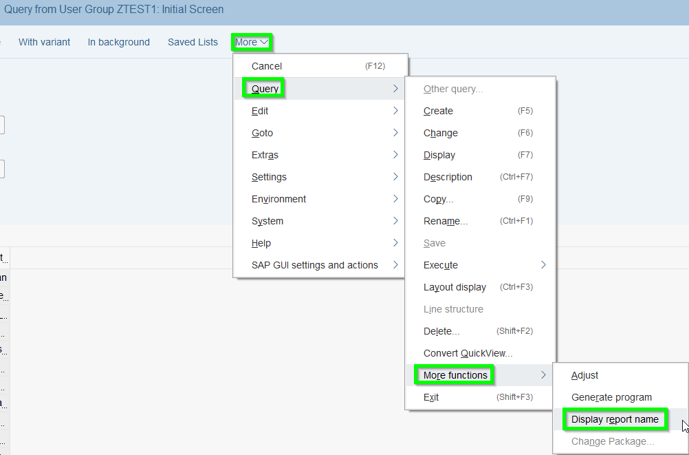 - Add Query Transaction: Via Customizing new Z-Transaction can be created and transported to P-System (PFCG)