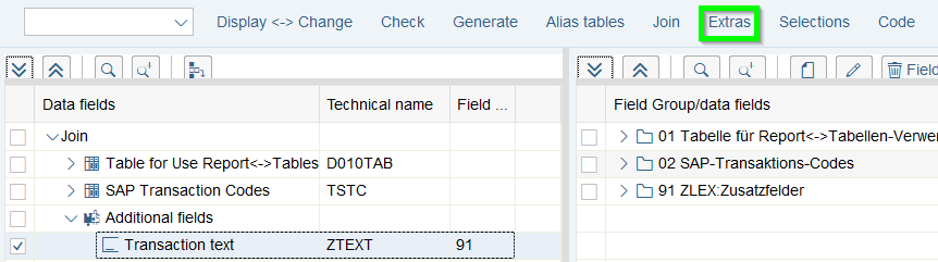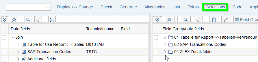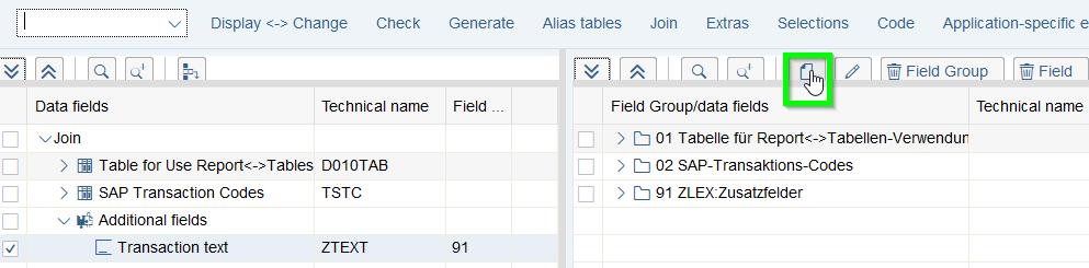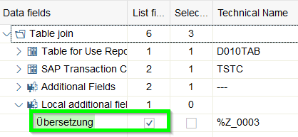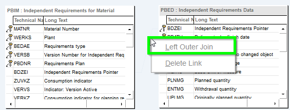 - In the Join-overview the technical description of each field can be retrieved. For check of a correct linkage this information is essential since linkage is based on same technical description which logically does not always mean that it is correct: