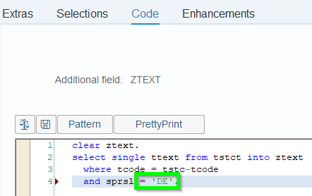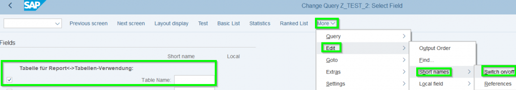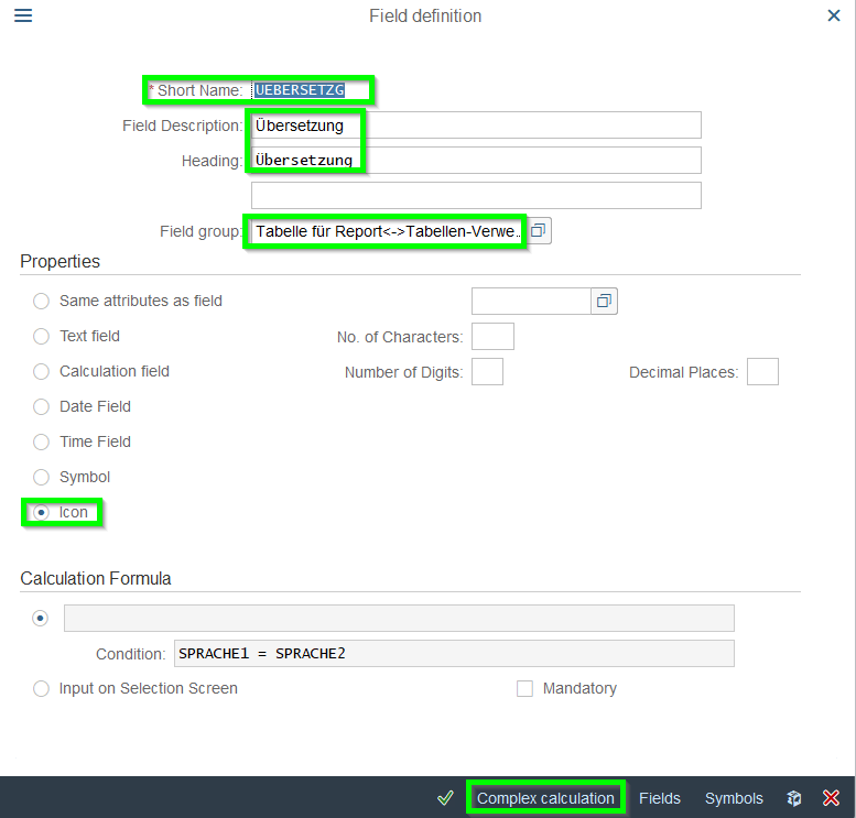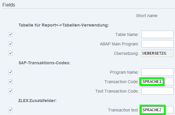 - Create Local Field : For example to show Icons if a translation of a transaction exist. 1st step to switch on „Short names“: