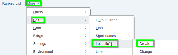 Last step „Local field“ activate as selection in Basic list: