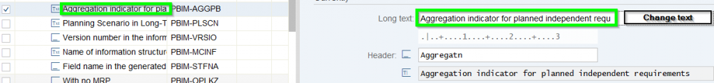 - In the change mode each field description can be changed