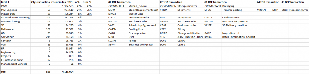 1. Report of used SAP Transaction Codes