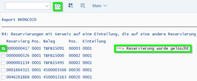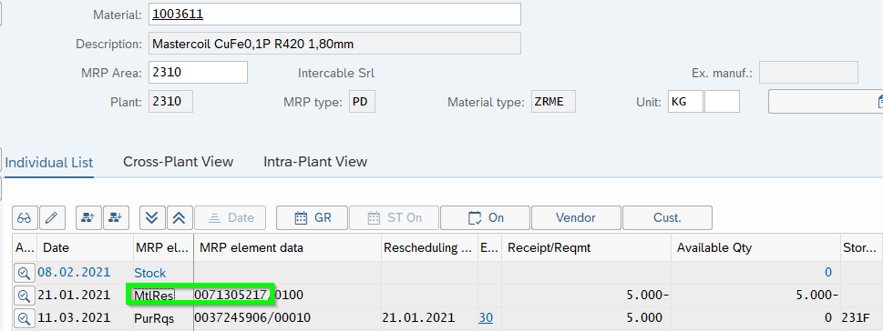 Then delete the former Reserveration 71305217 (MB22) and resulated Purchase Requisition 37245906 and run MD01N!